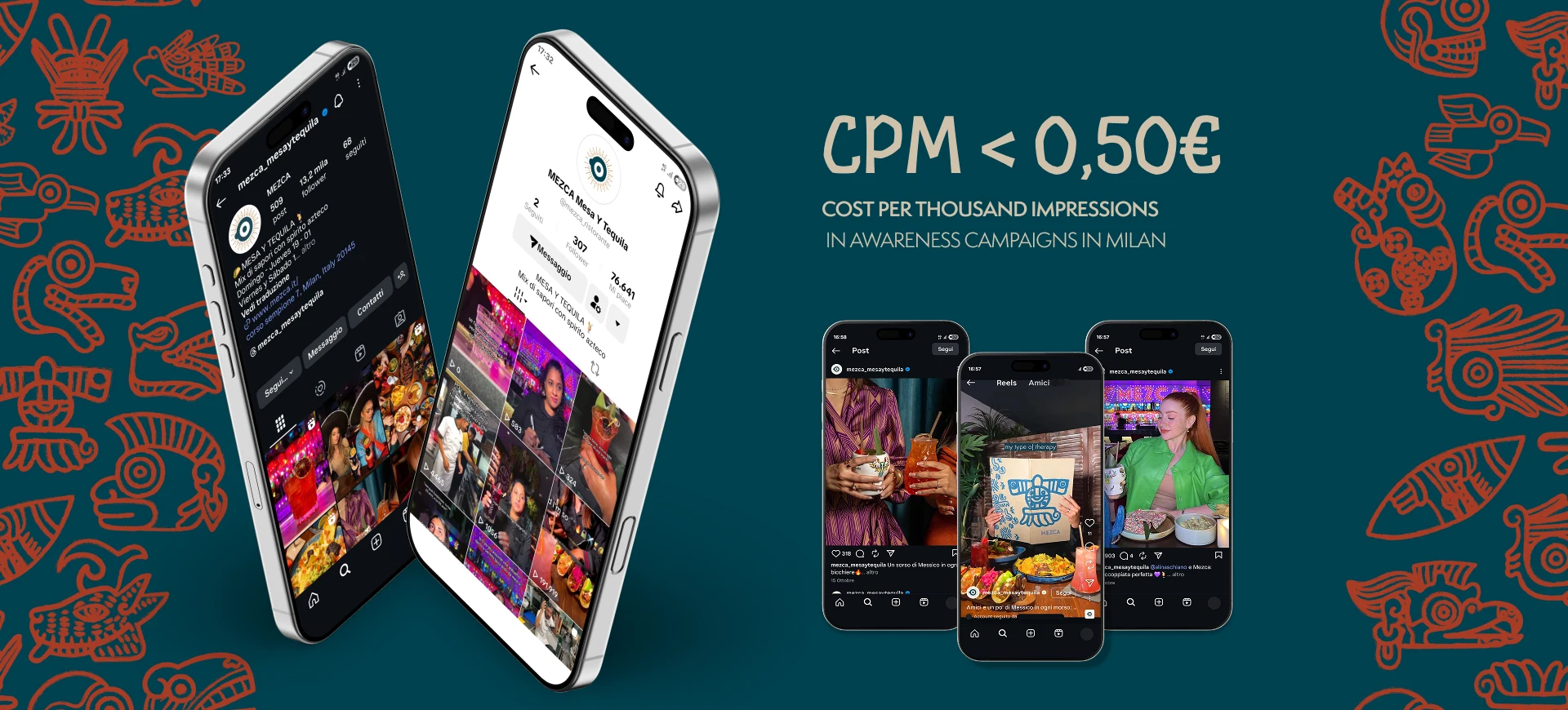 MEZCA conquers with its adv campaigns: thanks to Sinapps' strategy, the advertisements hit the mark, reach the right audience and turn interest into real conversions - with over 500,000 impressions per month and a cost per thousand impressions (CPM) below 0.50€ in awareness campaigns on Milan!
