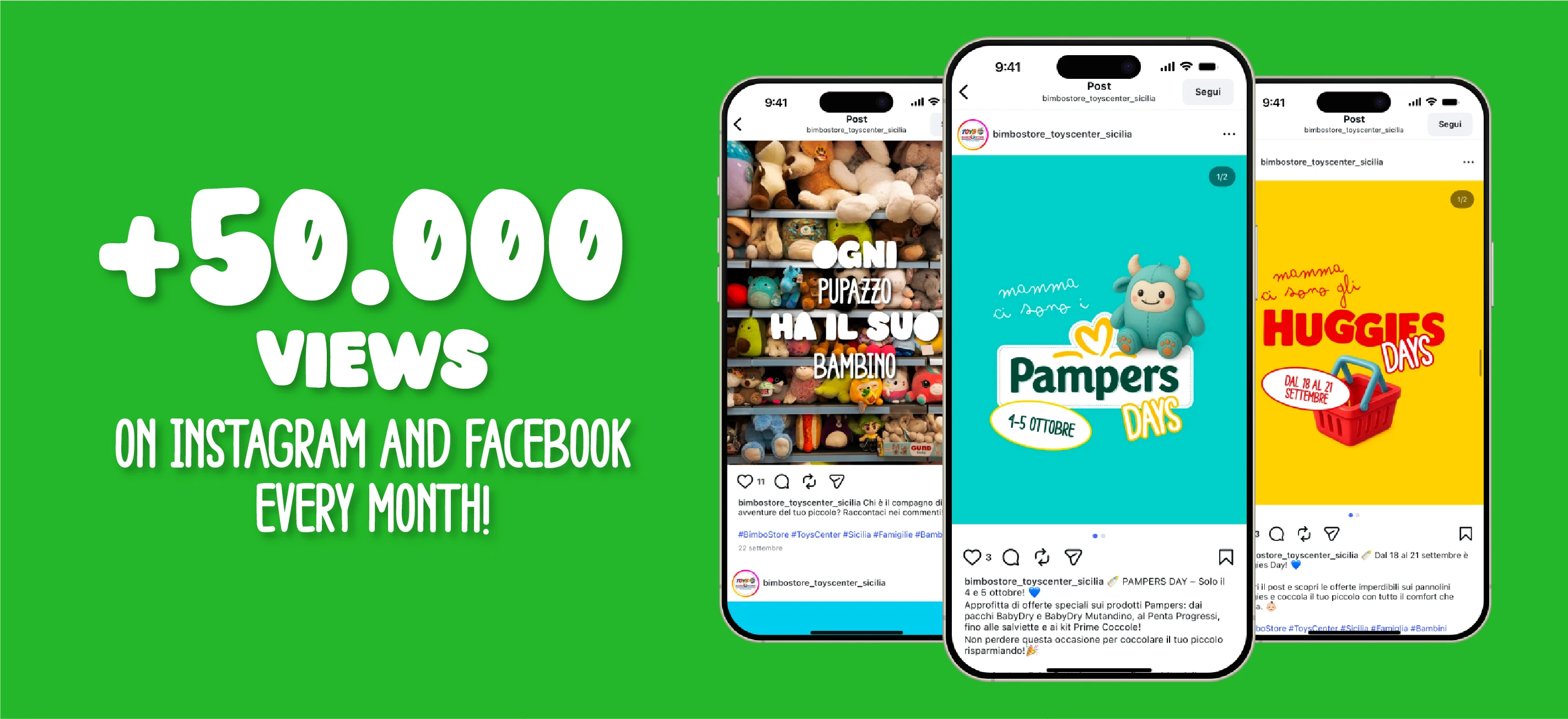On Instagram and Facebook we reported on the best-loved games, the funniest corners and the energy of Toys Center and Bimbostore Sicilia, getting noticed and reaching more than 1 million monthly impressions!
