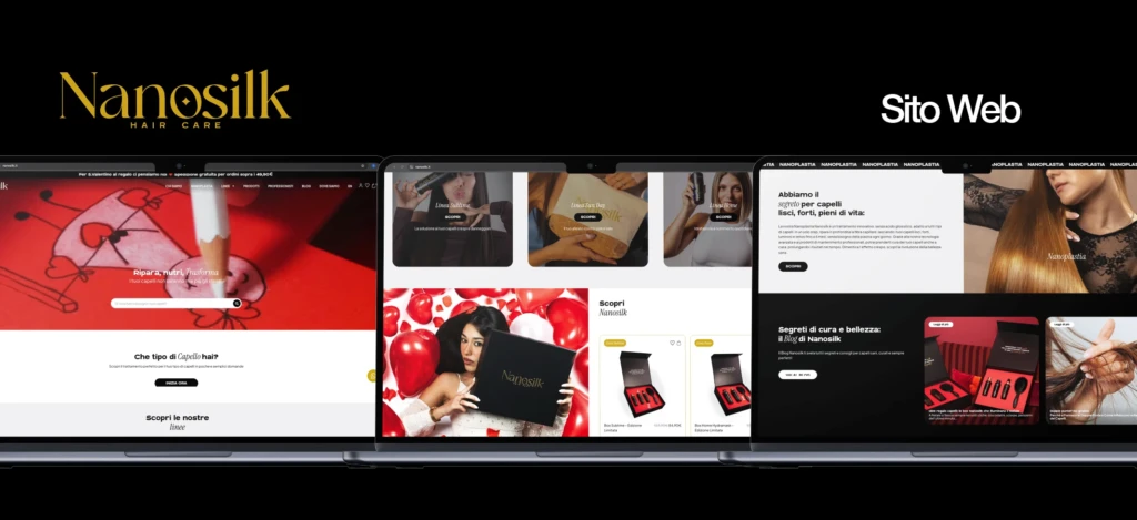 Abbiamo sviluppato l’e-commerce multilingua di Nanosilk con Woocommerce, progettato per la conversione e costruito attorno ai prodotti: una UI/UX chiara e performante progettata da zero su Figma dal nostro team di grafici.